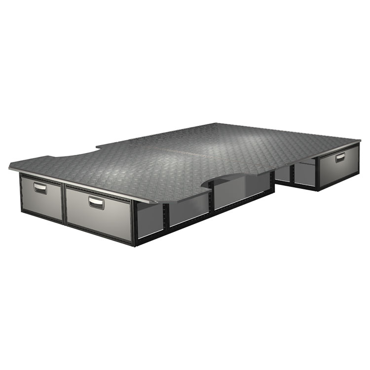 The kit is designed to be fitted on top of a wooden floor. The double floor is equipped with rails for easy installation of vehicle racking, and edging strips for a nice finish.
