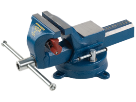 Schraubstock aus gesenkgeschmiedetem Stahl mit 120 mm Backenbreite. Die Drehplatte ermöglicht eine Rotation von bis zu 360 Grad. Inklusive integrierten Rohrspannbacken. Der Schraubstock kann mit einem Backenschutz kombiniert werden.