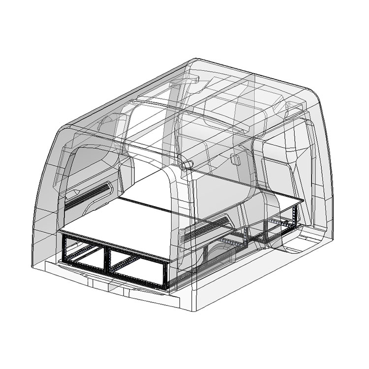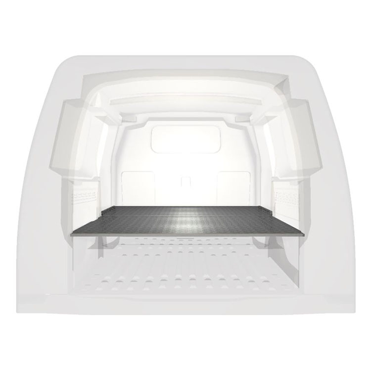 Double floor for a Citroën Berlingo/Peugeot Partner/Opel Combo L2 2019-. The floor is designed to fit an extra-long drawer solution with one drawer unit 486x1296x270 and one 648x1296x270 coming out from the rear doors, and one drawer unit 486x1296x270 coming out from the side door.