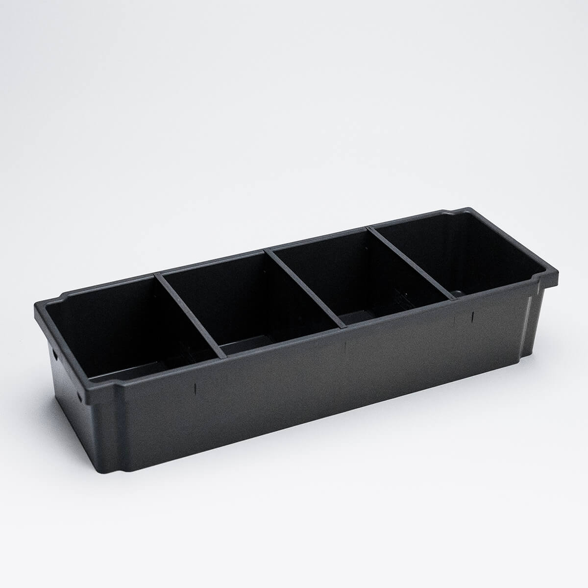 Schubkasteneinsätze dienen der platzsparenden Aufbewahrung im Schubkastenmodul. Sie sind verfügbar in den Tiefen 324 mm und 486 mm sowie in zwei Höhen für eine optimale Ladekapazität von niedrigen und mittelhohen Schubkästen. Inklusive Längs- und Quertrennwände für Einsatzschubkästen, die eine beliebige Facheinteilung ermöglichen.