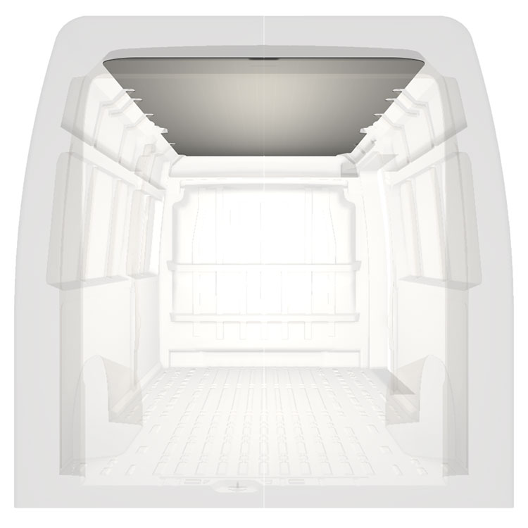 Leichte Dachverkleidung für einen Citroën Jumper / Peugeot Boxer / Fiat Ducato. Die Dachverkleidung erweckt einen professionellen Eindruck und schafft ein helles und angenehmes Arbeitsumfeld.