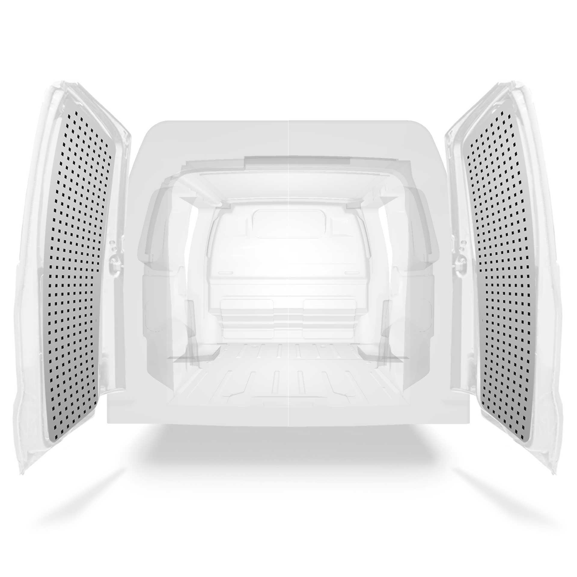 Designed to cover the upper and lower section of the rear doors separately, these tool boards create an efficient storage space for tools and other equipment.