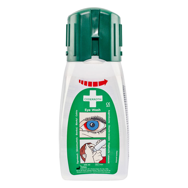 Eine persönliche Flasche mit Augenspüllösung im Taschenformat, die sich bequem in der Tasche oder in einem zugehörigen Etui mitnehmen lässt. Auf diese Weise ist sie bei Unfällen schnell zur Hand. Kleine, leicht bedienbare Flasche mit ergonomischer Augenschale und reichhaltigem Spülstrahl. Schnelles, leichtes Öffnen. Öffnen mit einem einzigen einfachen Handgriff. Drehen – schon ist die Flasche offen.