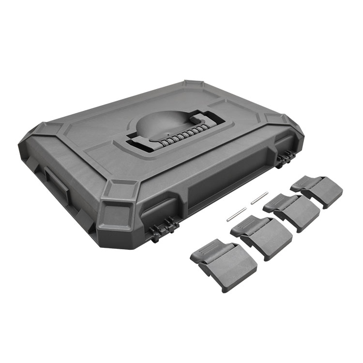 Der Deckel verfügt über zwei Scharniere und vier Klemmen, wodurch die Option besteht, den Deckel abzunehmen oder die Box mit dem an den Scharnieren befestigten Deckel zu verwenden.