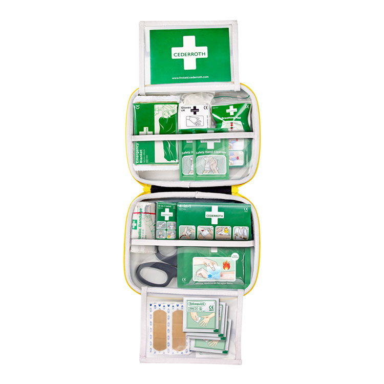 Der Cederroth First Aid Kit Medium ist gut bestückt. Der Erste-Hilfe-Koffer besteht aus einem gummiähnlichen Material mit einer matten Oberfläche, um Staub, Feuchtigkeit und Schmutz abzuhalten. Der Inhalt bleibt hygienisch sauber und stets einsatzbereit. Die Produkte sind übersichtlich in Fächer eingeteilt. Auf diese Weise ist es leicht, das richtige Produkt zu finden – gerade, wenn jede Sekunde zählt. Alle Produkte von Cederroth sind mit deutlichen, selbsterklärenden Anweisungen versehen. Deutliches Grün und Gelb als Signalfarben sorgen bereits von Weitem für gute Sichtbarkeit des Koffers. Durch den praktischen Griff mit verstellbarem Klettband kann der Koffer leicht befestigt oder getragen werden.
