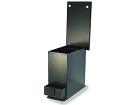 Klappbarer Deckel bzw. klappbare Tischplatte mit Aufbewahrungseinheit. Einschließlich Stifthalter und zwei Flaschenhaltern. Der Deckel bzw. die Tischplatte ist mit grauem Filz bezogen.