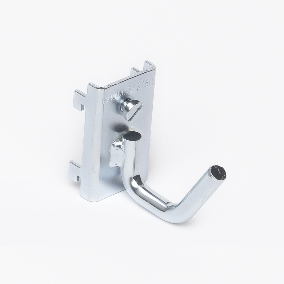 Werkzeughalter, der auf alle unsere Lochbleche und Wandschienen passt. Der Halter hat vier speziell entwickelte Sicherungshaken und wird mit einer großen Schraube arretiert.