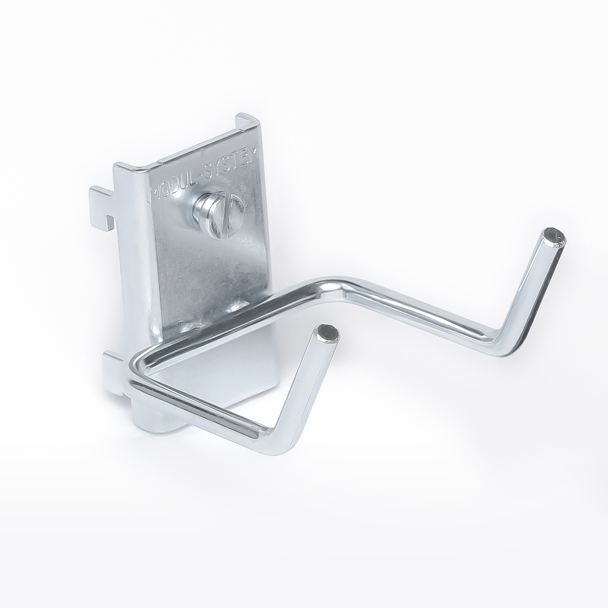 Werkzeughalter, der auf alle unsere Lochbleche und Wandschienen passt. Der Halter hat vier speziell entwickelte Sicherungshaken und wird mit einer großen Schraube arretiert.