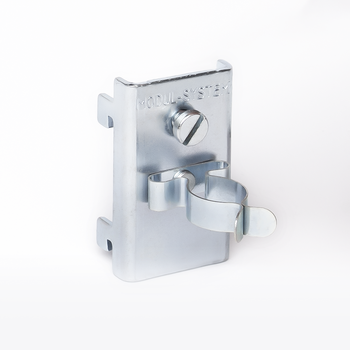 Werkzeughalter, der auf alle unsere Lochbleche und Wandschienen passt. Der Halter hat vier speziell entwickelte Sicherungshaken und wird mit einer großen Schraube arretiert.