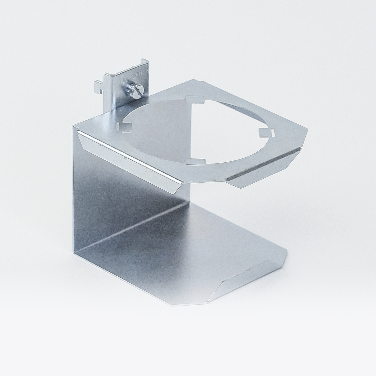 Werkzeughalter, der auf alle unsere Lochbleche und Wandschienen passt. Der Halter hat vier speziell entwickelte Sicherungshaken und wird mit einer großen Schraube arretiert.