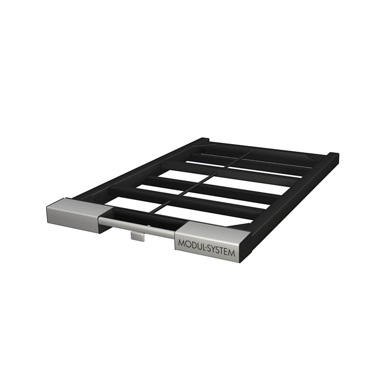 Leichte und robuste Auszugsvorrichtung aus ultrahochfestem Stahl mit einer Front aus eloxiertem Aluminium. Für noch flexiblere Verwendungsmöglichkeiten kann eine Ladeplatte auf der Vorrichtung montiert werden.