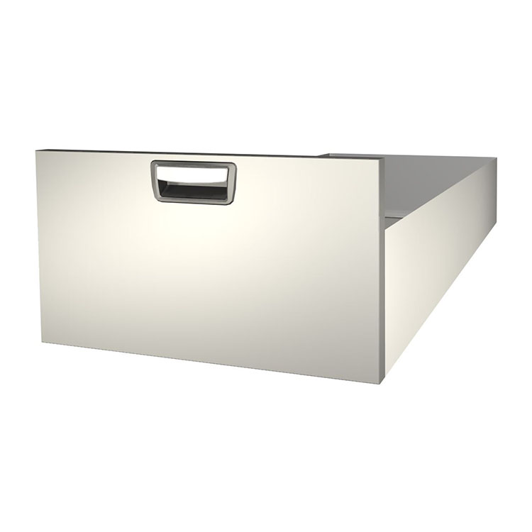 Robuste, extralange Schublade für den Einbau in einem Schubladenmodul. Die aus Aluminium gefertigte Schublade ist serienmäßig kugelgelagert. Die Mischung aus festen und flexiblen Lagern macht die Schublade stabil und einfach zu bedienen.