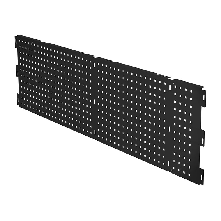 Werkzeugblech für extralange Schubladenmodule. Sie schützt die Schublade und gibt ihr gleichzeitig ein schönes Design. Die Werkzeugtafel ist mit 9 mm großen Löchern im Abstand von 34 mm gestanzt, was die Befestigung von Werkzeughaltern und anderem Zubehör ermöglicht. Wird mit Schrauben montiert (nicht im Lieferumfang enthalten).