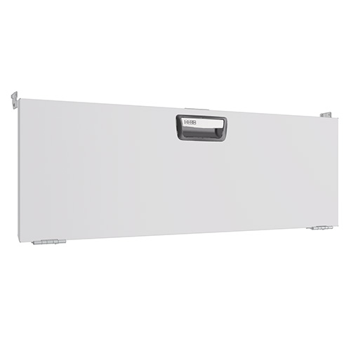Herunterklappbare Klappen sind an beiden Seiten mit Gasfedern bestückt, die für ein sanftes Öffnen und Schließen sorgen. Der Öffnungswinkel beträgt 90°. Im Klappengriff ist eine Sperre integriert, die ein selbsttätiges Öffnen der Klappe während der Fahrt verhindert. Passend auch für Radkastengestelle mit optionaler Werkbankplatte. Wenn Sie eine Klappe zwischen zwei Regalseitenteilen anbringen möchten, benötigen Sie dafür ein Montagegestell.