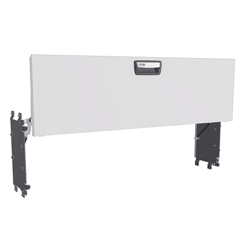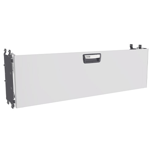 Die Klappen, mit Gasfedern bestückt, öffnen sich nach oben. So kann der Bodenbereich maximal genutzt werden, die Klappe lässt sich einfacher öffnen und schließen und die Ergonomie für den Benutzer wird optimiert. Bitte beachten Sie, dass senkrecht aufgehende Gasfederklappen nicht mit Werkbankplatten kombinierbar sind.