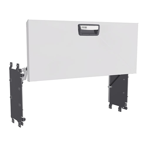 Die Klappen, mit Gasfedern bestückt, öffnen sich nach oben. So kann der Bodenbereich maximal genutzt werden, die Klappe lässt sich einfacher öffnen und schließen und die Ergonomie für den Benutzer wird optimiert. Bitte beachten Sie, dass senkrecht aufgehende Gasfederklappen nicht mit Werkbankplatten kombinierbar sind.