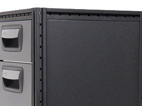 Glattes Abdeckblech zur Positionierung in Modulen wie z.B. Schubkastenmodulen und Radkastenschränken. Die Abdeckseiten werden mit Clips montiert.
