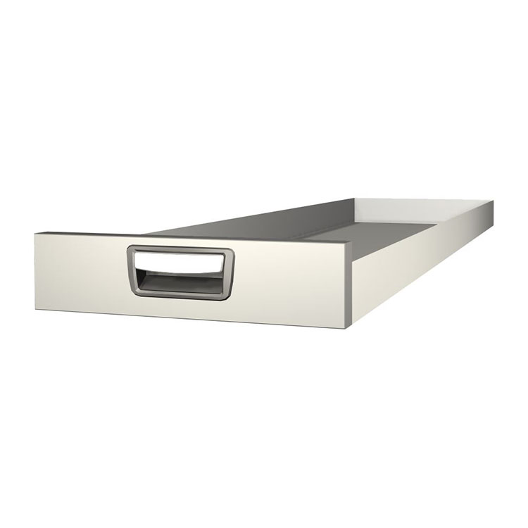 Robuste, extralange Schublade für den Einbau in einem Schubladenmodul. Die aus Aluminium gefertigte Schublade ist serienmäßig kugelgelagert. Die Mischung aus festen und flexiblen Lagern macht die Schublade stabil und einfach zu bedienen.