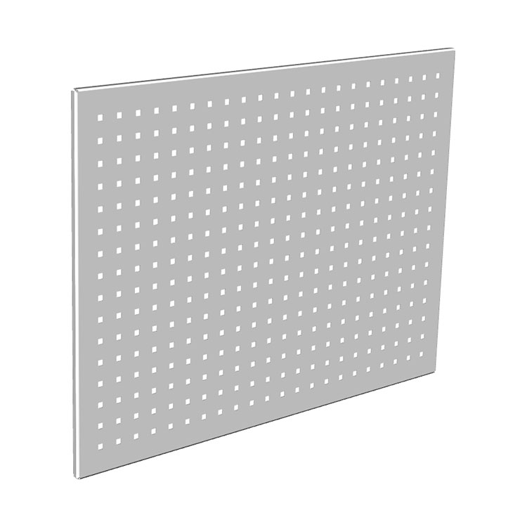 Das Lochblech wurde für die Anbringung an Wänden konzipiert. Die Lochweite der in die Metallplatte gestanzten Öffnungen beträgt 9 mm bei einem Lochabstand von 34 mm. Mithilfe von Werkzeughaken wird ein flexibles System u.a. zur Werkzeugaufbewahrung geschaffen.