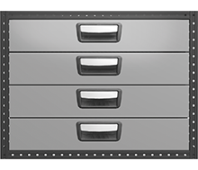 Standardmäßig sind unsere Schubkästen mit Kugellagerführungen ausgestattet. Sie haben eine Ladekapazität von 30 kg und eine maximale Belastungskapazität von 100 kg pro Schubkastenmodul. Die Schubkästen sind vollständig herausziehbar und mit Stoppern ausgestattet. Zur optimalen Ausnutzung kann das Schubkastenmodul mit speziellem Zubehör ausgestattet werden, wie z. B. Schaumstoffplatten, Einlagen und Trennwände. Zur Gewichtsoptimierung sind Abdeckseiten und Lochbleche optional.