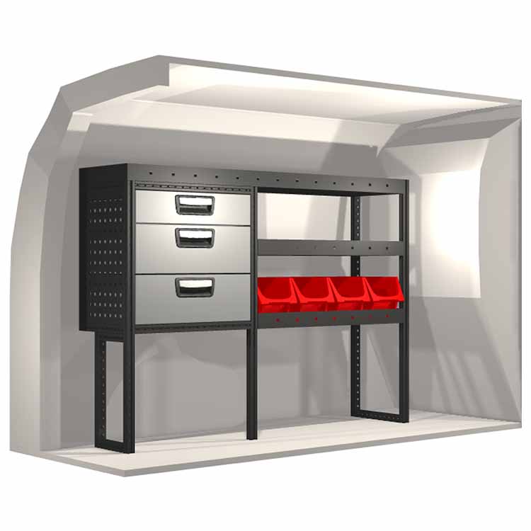 Dieses Einrichtungssystem wurde entworfen, um optimale Passgenauigkeit und bestmögliche Funktionalität und Sicherheit zu gewährleisten. Es ist für den professionellen Gebrauch entwickelt worden, ist flexibel und zur Anwendung in verschiedenen Geschäftsbereichen bestimmt. Universal- und Bodenwinkel sind enthalten.