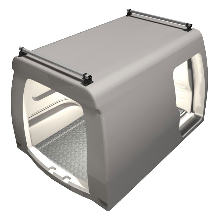 Für ein minimales Gewicht sind die Traverse aus hochfestem Aluminium gefertigt. Alle Halterungen bestehen aus pulverbeschichtetem galvanisiertem Stahl und die Verarbeitungsdetails wie Endkappen sind aus Kunststoff. Die T-Schienen (M8) des Dachträgers können für die schnelle und einfache Montage von Leuchtenhalterungen, Lastanschlägen, Spanngurten und anderen Zubehörteilen verwendet werden.