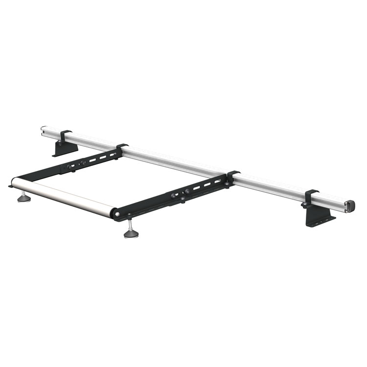 Die Rollenbahn wird hinten am Dachträger montiert und erleichtert das Be- sowie Entladen. Gleichzeitig schützt sie das Heck des Fahrzeugs.