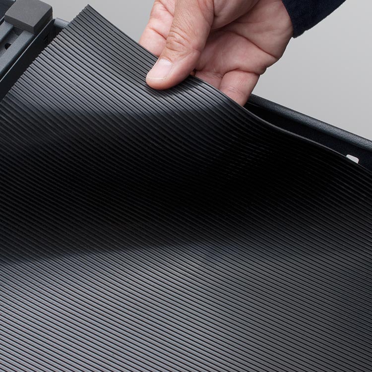 Schall- und stoßdämpfende Gummimatte für Ablagen. Die Matte verfügt über eine gerillte, rutschfeste Oberfläche und kann zu Reinigungszwecken leicht entfernt werden. Wird zugeschnitten geliefert.