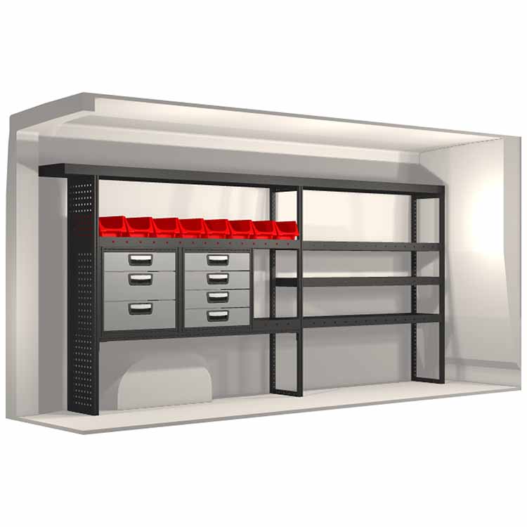 Dieses Einrichtungssystem wurde entworfen, um optimale Passgenauigkeit und bestmögliche Funktionalität und Sicherheit zu gewährleisten. Es ist für den professionellen Gebrauch entwickelt worden, ist flexibel und zur Anwendung in verschiedenen Geschäftsbereichen bestimmt. Universal- und Bodenwinkel sind enthalten.