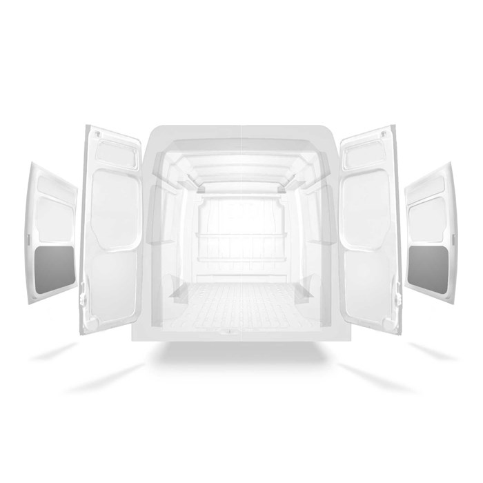 Leichte Verkleidung für den unteren Teil der Seitentür eines Citroën Jumper / Peugeot Boxer / Fiat Ducato mit zwei Seitentüren. Die Verkleidung verringert Verschleiß und hilft, den Restwert Ihres Fahrzeugs zu erhalten.