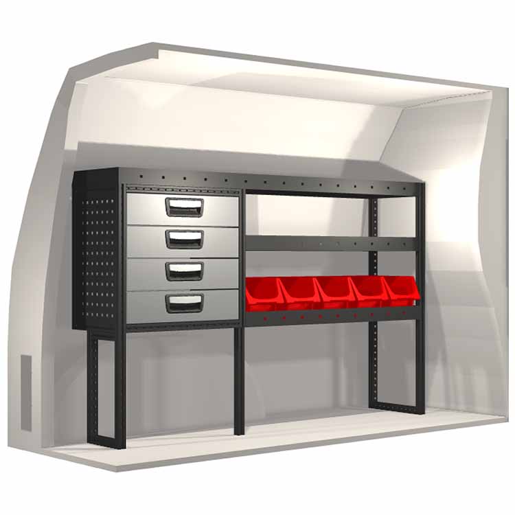 Dieses Einrichtungssystem wurde entworfen, um optimale Passgenauigkeit und bestmögliche Funktionalität und Sicherheit zu gewährleisten. Es ist für den professionellen Gebrauch entwickelt worden, ist flexibel und zur Anwendung in verschiedenen Geschäftsbereichen bestimmt. Universal- und Bodenwinkel sind enthalten.