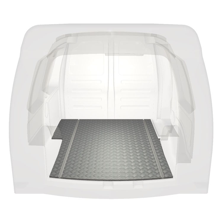 Leichte und robuste, extra lange Böden für einen Volkswagen Caddy werden mit einem rutschfesten Trittblech aus Aluminium und Schienen (längs) für eine schnelle und sichere Montage von Regalsystemen und anderem Zubehör geliefert.
