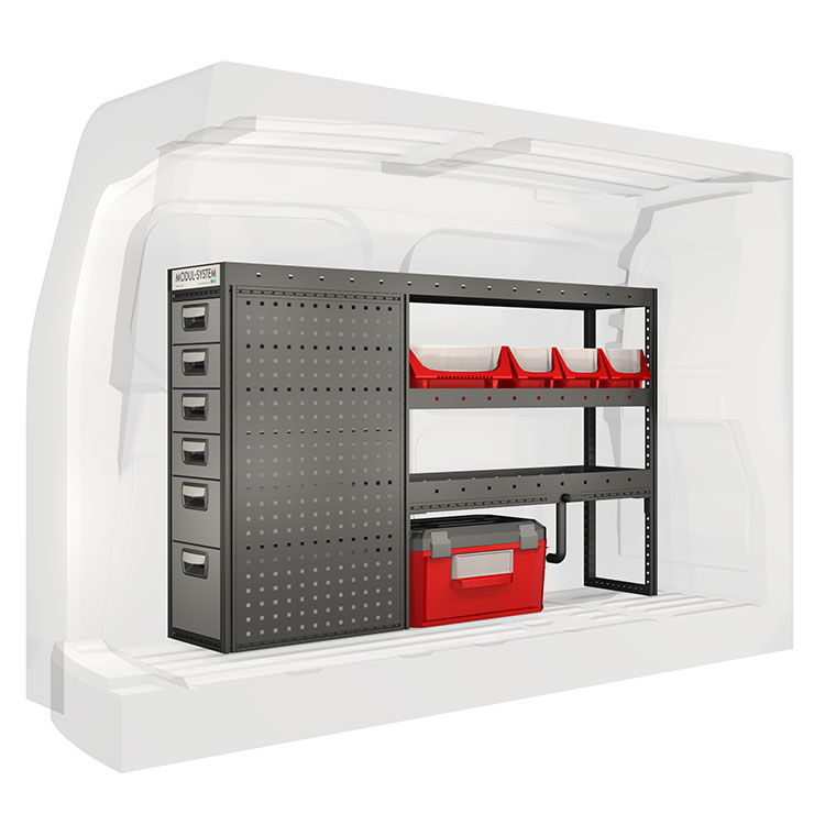 Dieses Einrichtungssystem wurde entworfen, um optimale Passgenauigkeit und bestmögliche Funktionalität und Sicherheit zu gewährleisten. Es ist für den professionellen Gebrauch entwickelt worden, ist flexibel und zur Anwendung in verschiedenen Geschäftsbereichen bestimmt. Universal- und Bodenwinkel sind enthalten.