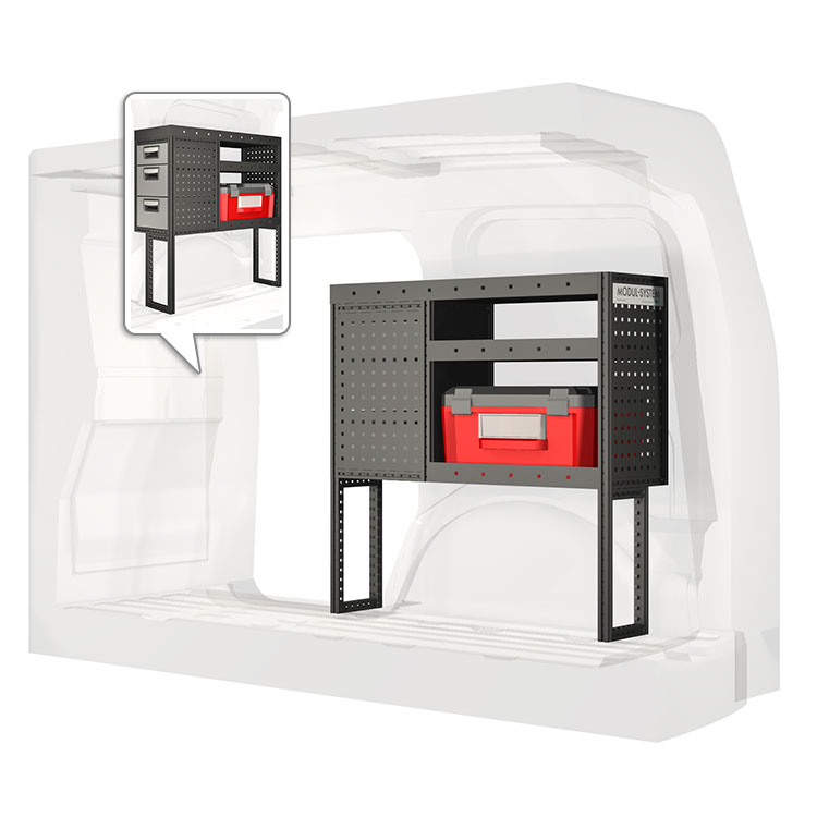 Dieses Einrichtungssystem wurde entworfen, um optimale Passgenauigkeit und bestmögliche Funktionalität und Sicherheit zu gewährleisten. Es ist für den professionellen Gebrauch entwickelt worden, ist flexibel und zur Anwendung in verschiedenen Geschäftsbereichen bestimmt. Universal- und Bodenwinkel sind enthalten.