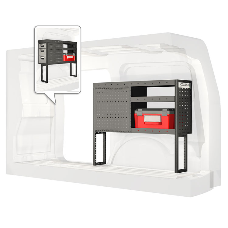 Dieses Einrichtungssystem wurde entworfen, um optimale Passgenauigkeit und bestmögliche Funktionalität und Sicherheit zu gewährleisten. Es ist für den professionellen Gebrauch entwickelt worden, ist flexibel und zur Anwendung in verschiedenen Geschäftsbereichen bestimmt. Universal- und Bodenwinkel sind enthalten.