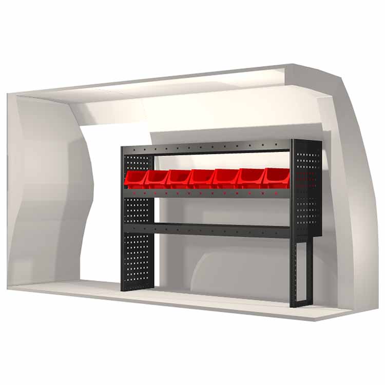 Dieses Einrichtungssystem wurde entworfen, um optimale Passgenauigkeit und bestmögliche Funktionalität und Sicherheit zu gewährleisten. Es ist für den professionellen Gebrauch entwickelt worden, ist flexibel und zur Anwendung in verschiedenen Geschäftsbereichen bestimmt. Universal- und Bodenwinkel sind enthalten.