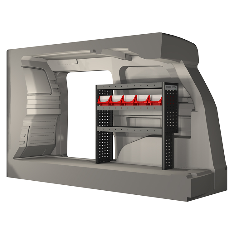 The racking has been specially designed to ensure the optimum fit to the vehicle, as well as the best possible functionality and safety. It has been developed for professional use, is flexible and is intended for service jobs in various types of business. All shelves are equipped with rubber mats, and all drawers with foam plastic liners. Assembly material is included.