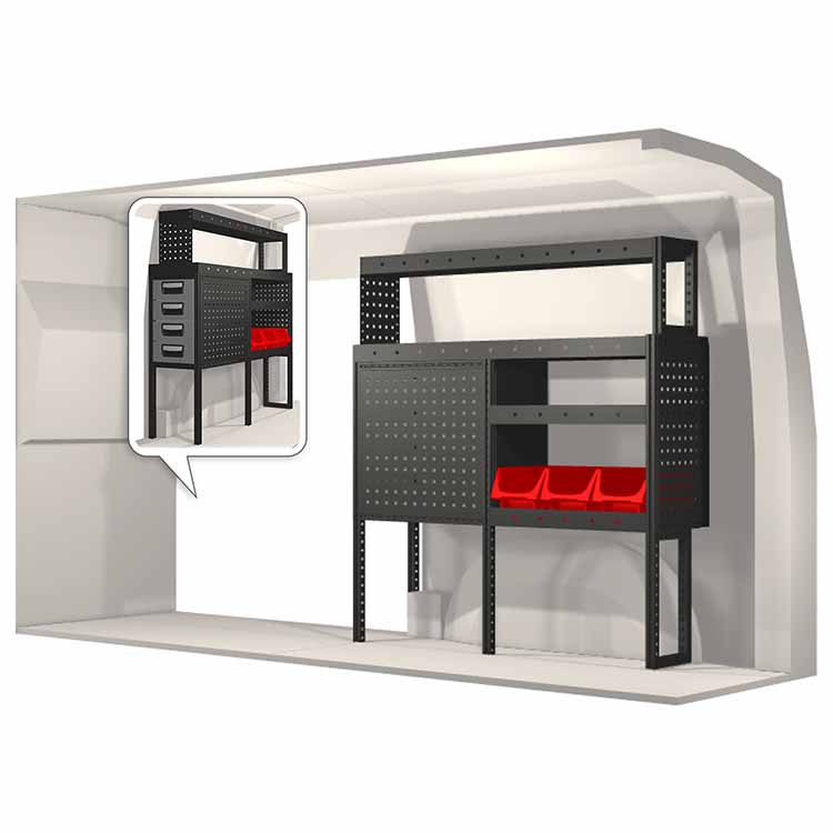 Dieses Einrichtungssystem wurde entworfen, um optimale Passgenauigkeit und bestmögliche Funktionalität und Sicherheit zu gewährleisten. Es ist für den professionellen Gebrauch entwickelt worden, ist flexibel und zur Anwendung in verschiedenen Geschäftsbereichen bestimmt. Universal- und Bodenwinkel sind enthalten.