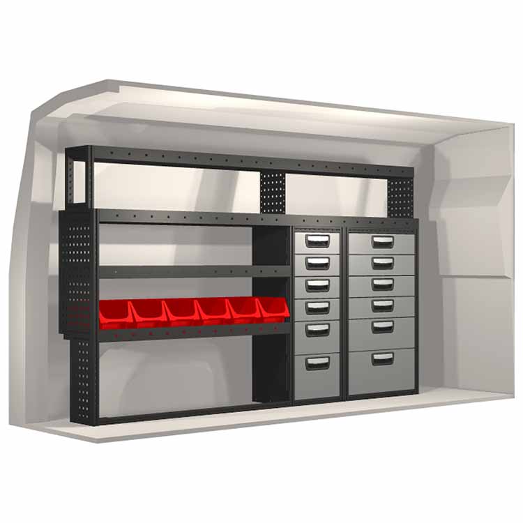 Dieses Einrichtungssystem wurde entworfen, um optimale Passgenauigkeit und bestmögliche Funktionalität und Sicherheit zu gewährleisten. Es ist für den professionellen Gebrauch entwickelt worden, ist flexibel und zur Anwendung in verschiedenen Geschäftsbereichen bestimmt. Universal- und Bodenwinkel sind enthalten.