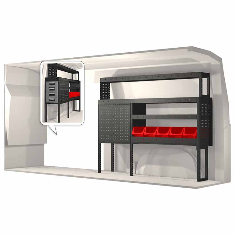 Dieses Einrichtungssystem wurde entworfen, um optimale Passgenauigkeit und bestmögliche Funktionalität und Sicherheit zu gewährleisten. Es ist für den professionellen Gebrauch entwickelt worden, ist flexibel und zur Anwendung in verschiedenen Geschäftsbereichen bestimmt. Universal- und Bodenwinkel sind enthalten.