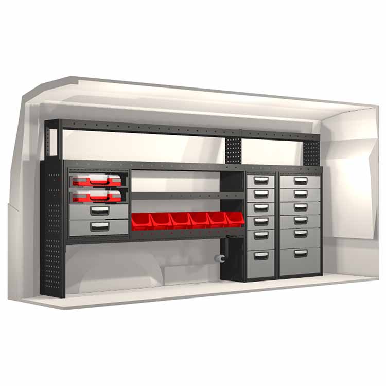 Dieses Einrichtungssystem wurde entworfen, um optimale Passgenauigkeit und bestmögliche Funktionalität und Sicherheit zu gewährleisten. Es ist für den professionellen Gebrauch entwickelt worden, ist flexibel und zur Anwendung in verschiedenen Geschäftsbereichen bestimmt. Universal- und Bodenwinkel sind enthalten.
